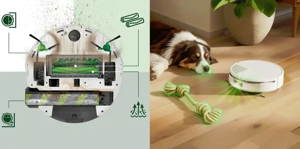 Vores test afslørede dens bemærkelsesværdige evne til at eliminere genstridige pletter. Med en PowerSpin™-rullemoppe, der i kombination med SmartScrub-funktionen angriber snavs med et konstant tryk, efterlades dine gulve skinnende rene. Samtidig benytter PrecisionVision™ AI-teknologien sig af kunstig intelligens til at identificere forhindringer som ledninger og selv dyreefterladenskaber, hvilket forebygger ubehagelige overraskelser.