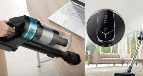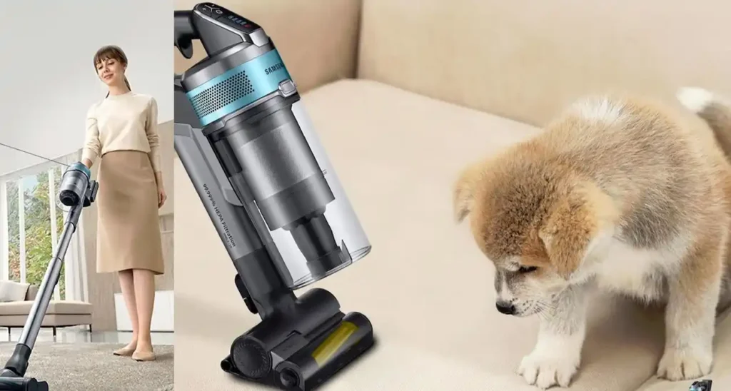 Velkommen til vores omfattende anmeldelse af Samsung Jet 75E Pet poseløs stangstøvsuger VS20B75AGR1, en ledningsfri løsning designet til at revolutionere din rengøringsrutine. Denne kraftfulde enhed lover at gøre op med dyrehår og almindeligt snavs med lethed, takket være dens avancerede teknologi. Med en brugervenlig 2-i-1 stick/håndholdt design, er den ideel til ethvert hjem, især dem med kæledyr, der kræver ekstra opmærksomhed på renlighed.